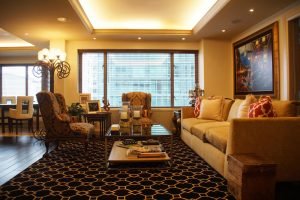Home » 57th Street Client’s Living Room » Remodel/Electric Living room – The cove lighting detail concealed behind the crown molding adds additional warmth to the area.